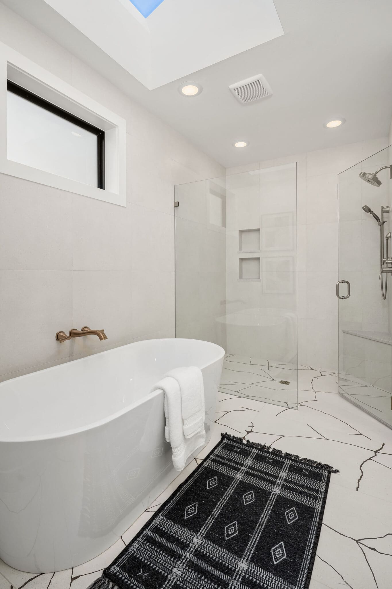 - Designer primary suite with five-piece bath and heated floors