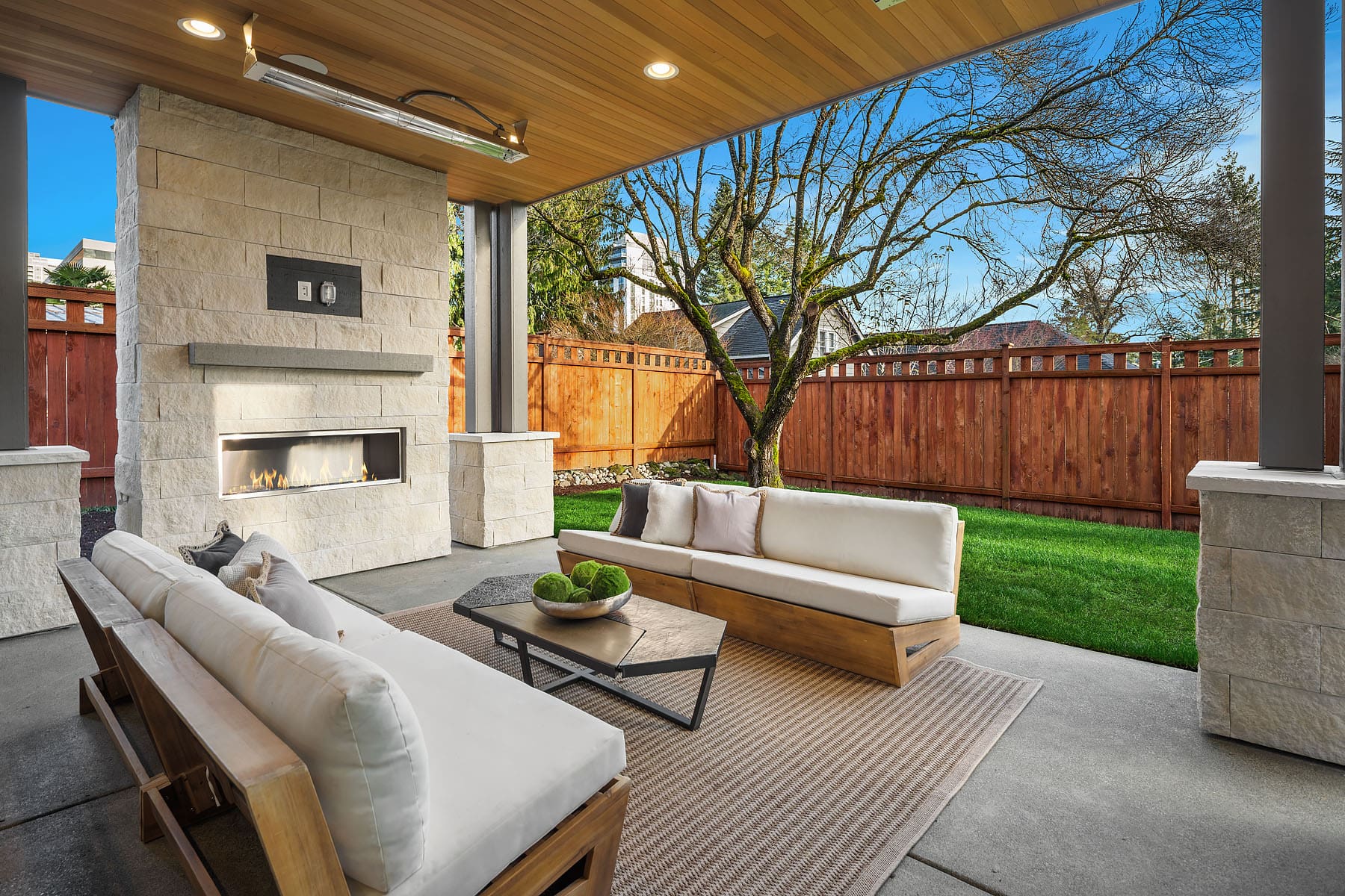 - Private outdoor covered living area with fireplace