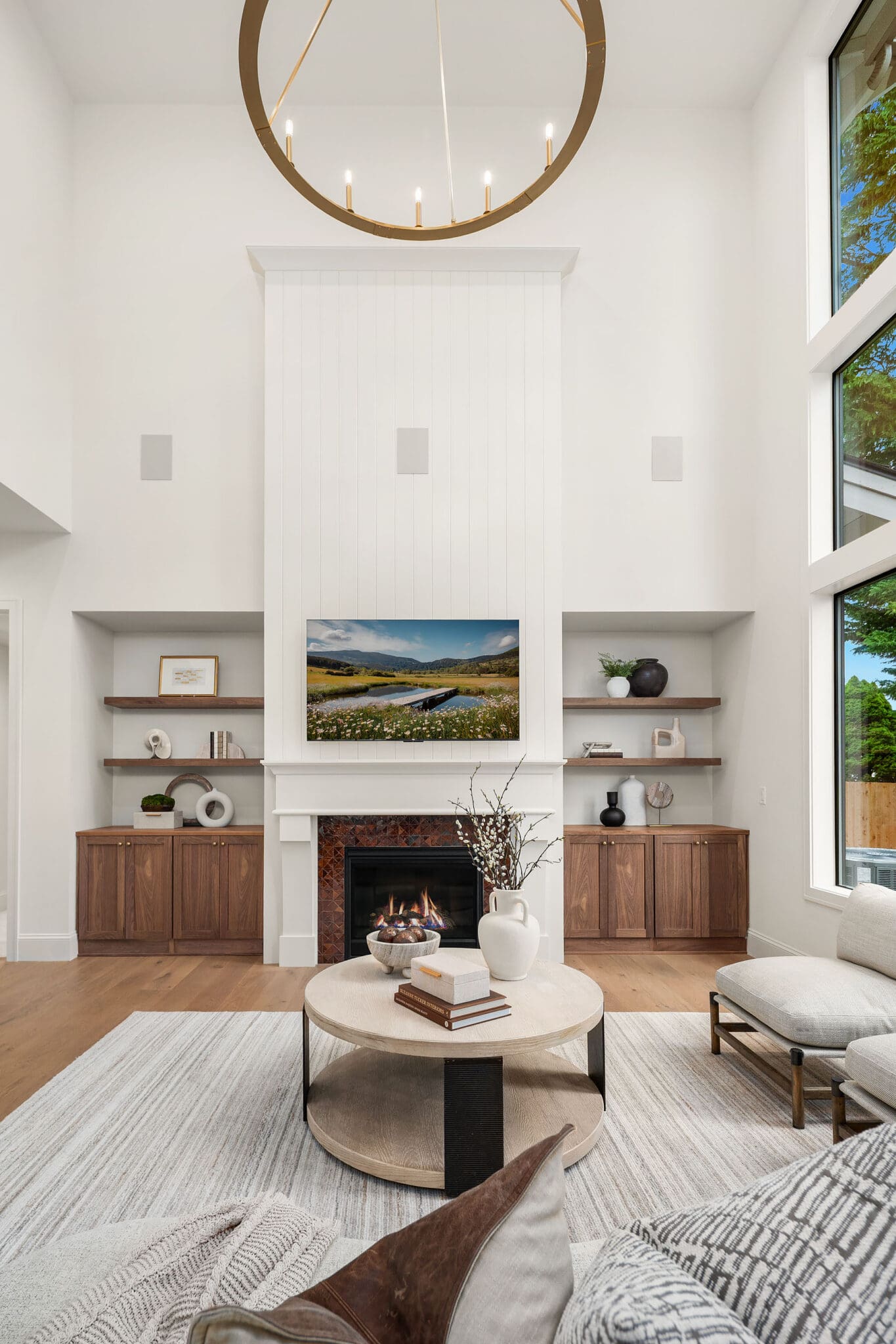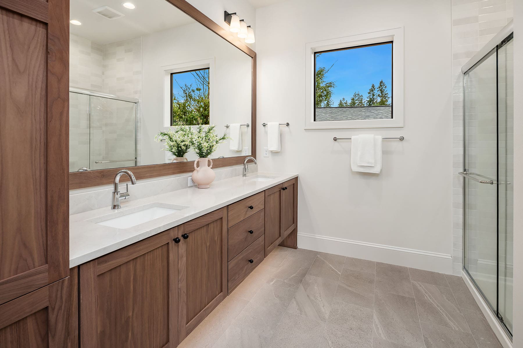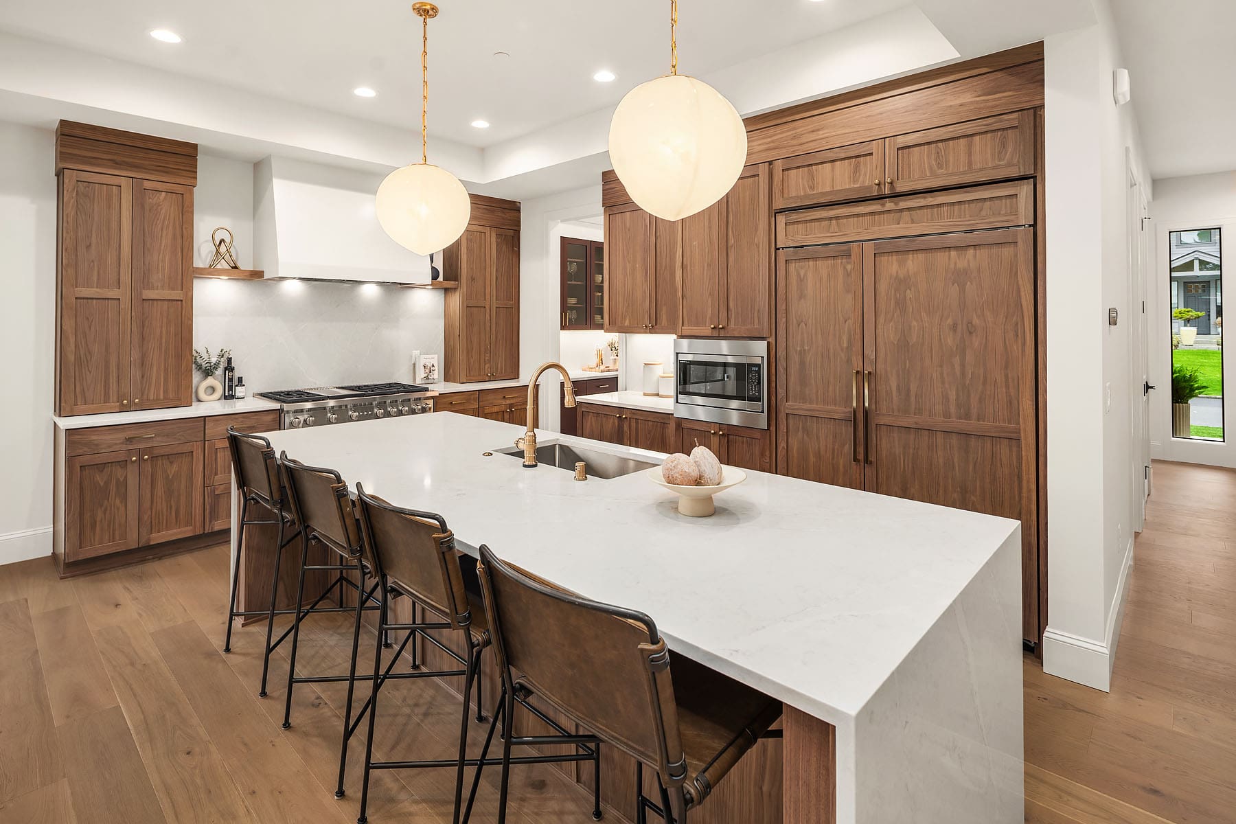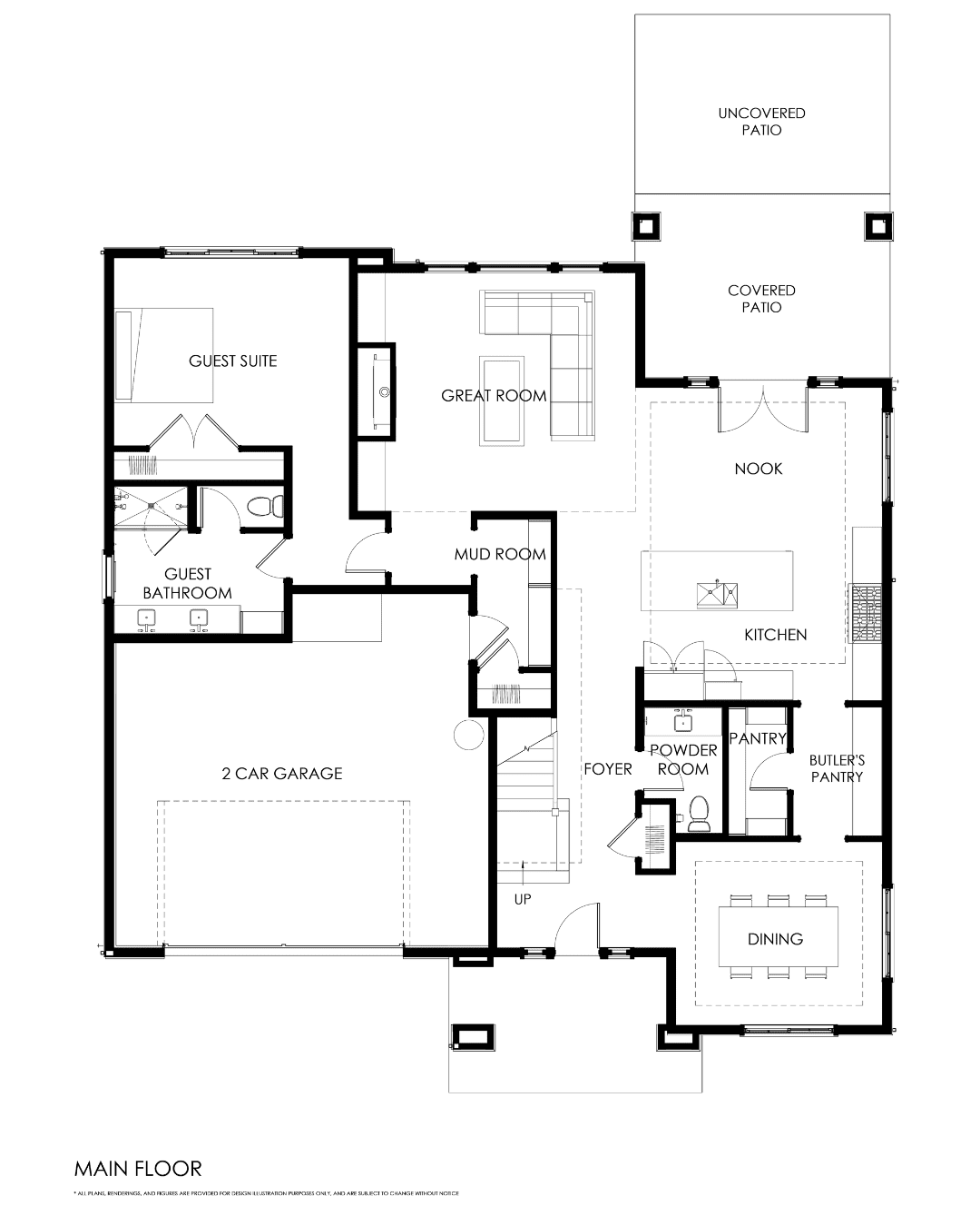 Thoughtfully designed for everyday living, this home features a spacious two-story great room that connects seamlessly to a designer chef’s kitchen with luxury appliances. Enjoy year-round living on the private outdoor living area with heaters, looking over the private backyard. A butler’s pantry connects the kitchen to the formal dining room, making hosting simple and convenient. The main floor also includes a private guest suite with its own en suite bath and a two-car garage with an adjoining mudroom.