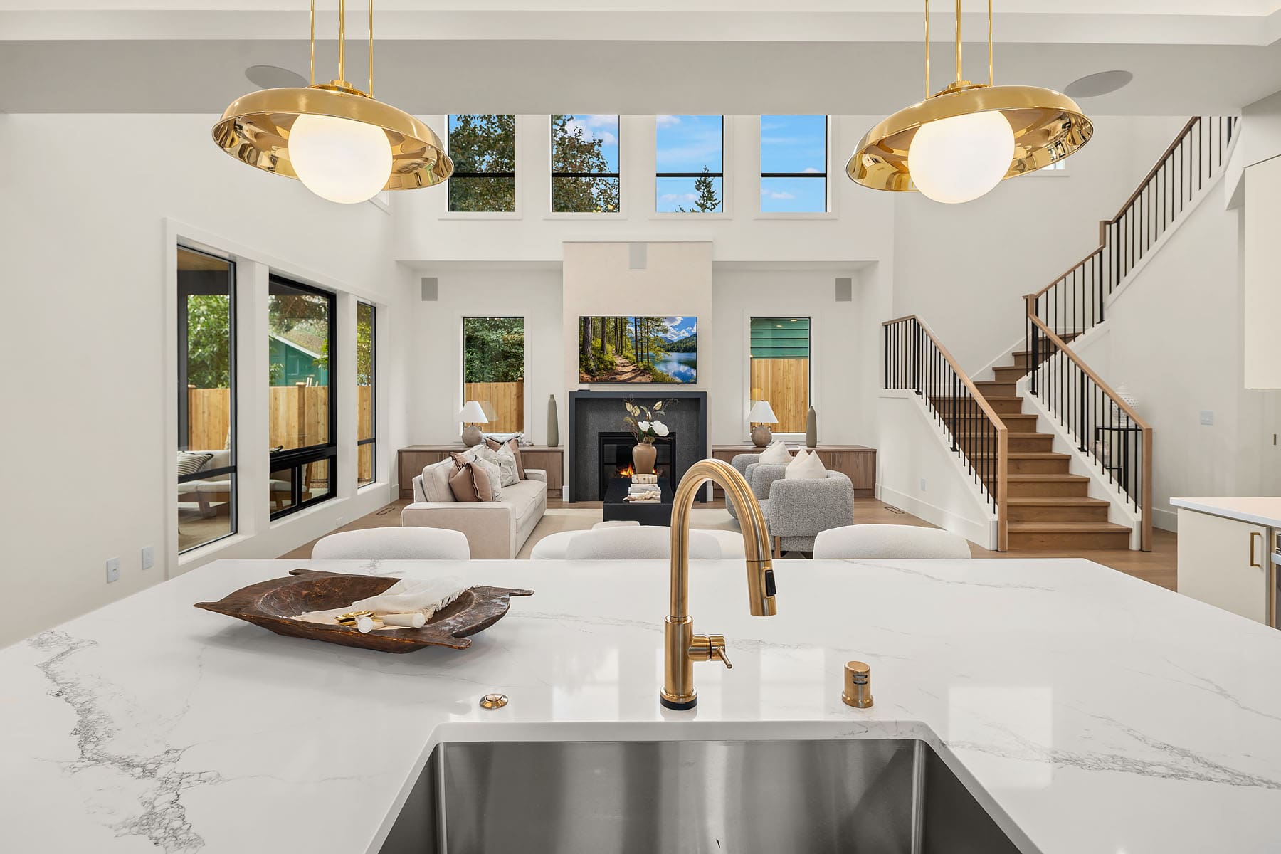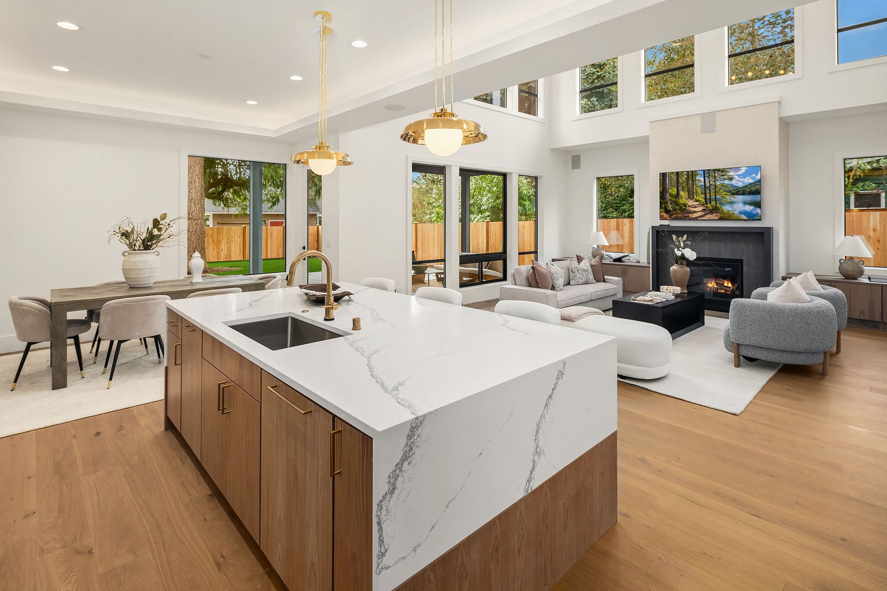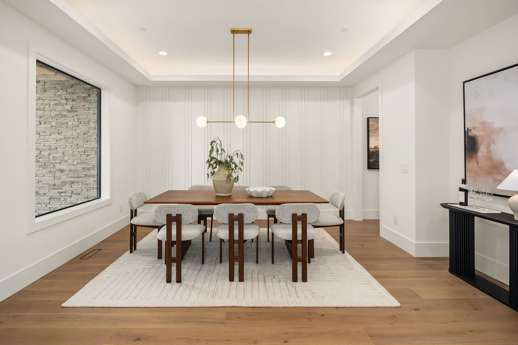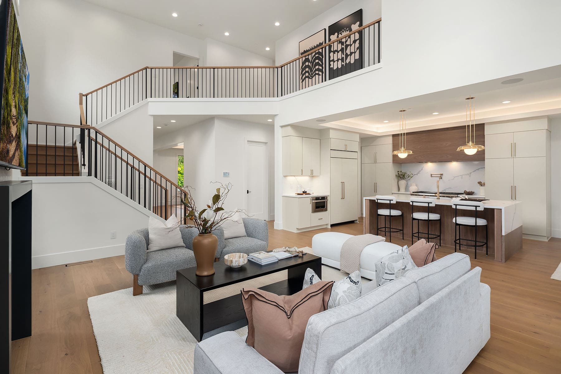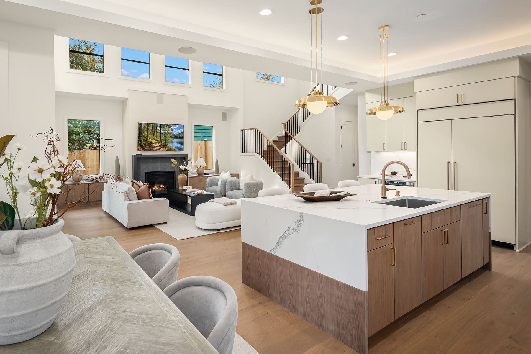 Thoughtfully designed for everyday living, this home features a spacious two-story great room that connects seamlessly to a designer chef’s kitchen with luxury appliances. Enjoy year-round living on the private outdoor living area, looking over the private backyard. A butler’s pantry connects the kitchen to the formal dining room, making hosting simple and convenient. The main floor also includes a private guest suite with its own en suite bath, dedicated den and a three-car garage with an adjoining mudroom.