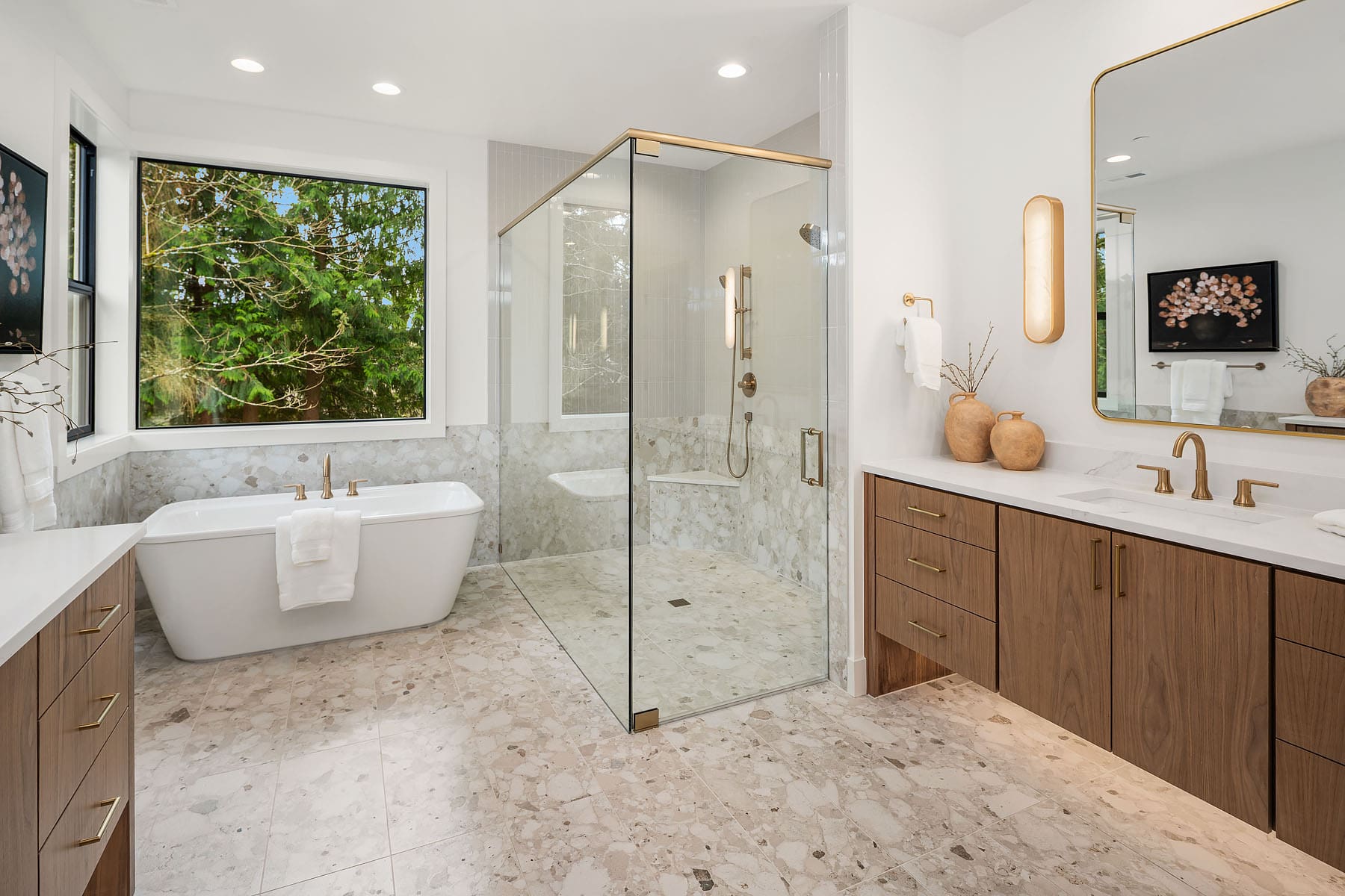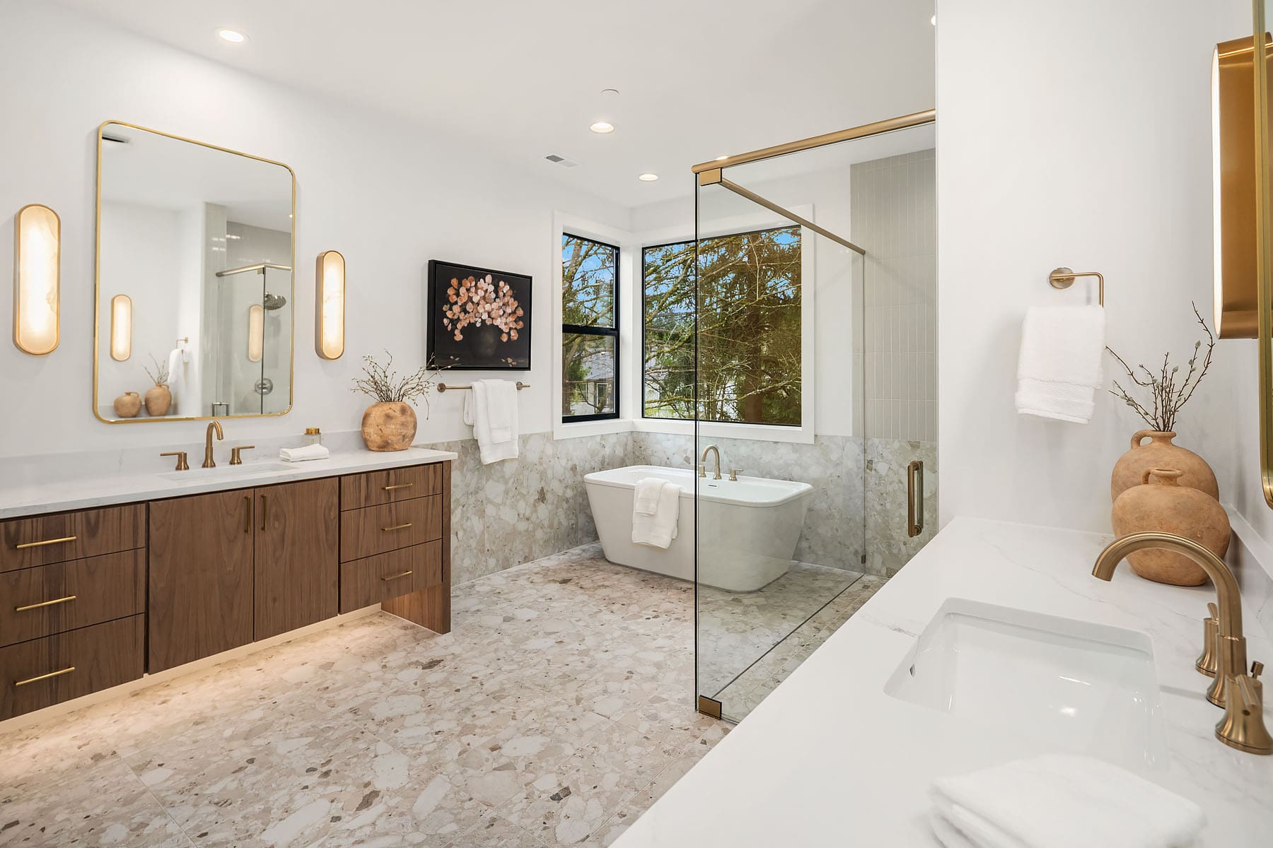- Designer primary suite with five-piece bath, heated floors and connected laundry