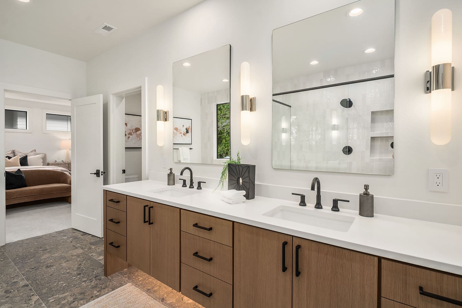 - Designer primary suite with five-piece bath, heated floors and connected laundry