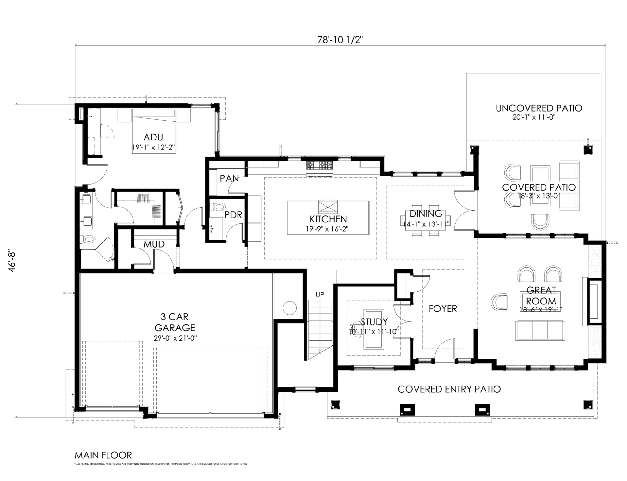 Perfect for both entertaining and everyday living, this home features a spacious two-story great room that flows seamlessly into a chef’s kitchen with luxury appliances. Enjoy year-round living on the private covered patio. The main floor also offers a private main floor ADU suite with a kitchenette, a dedicated den for office space, and a spacious 3-car garage with an adjoining mudroom.