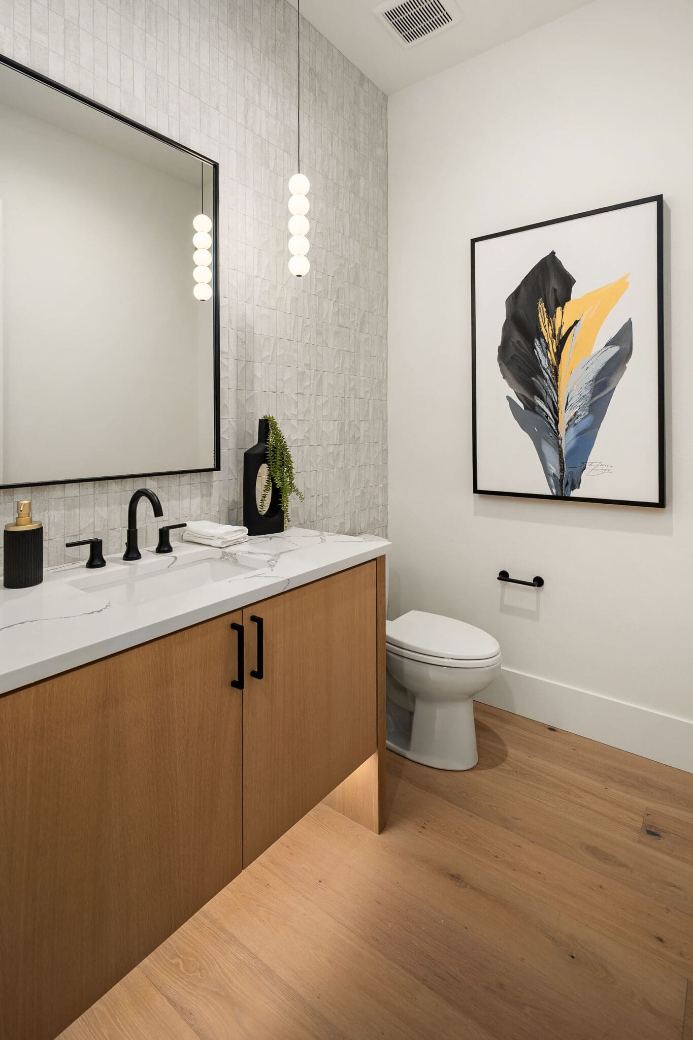 - Designer primary suite with a five-piece bath & heated floors