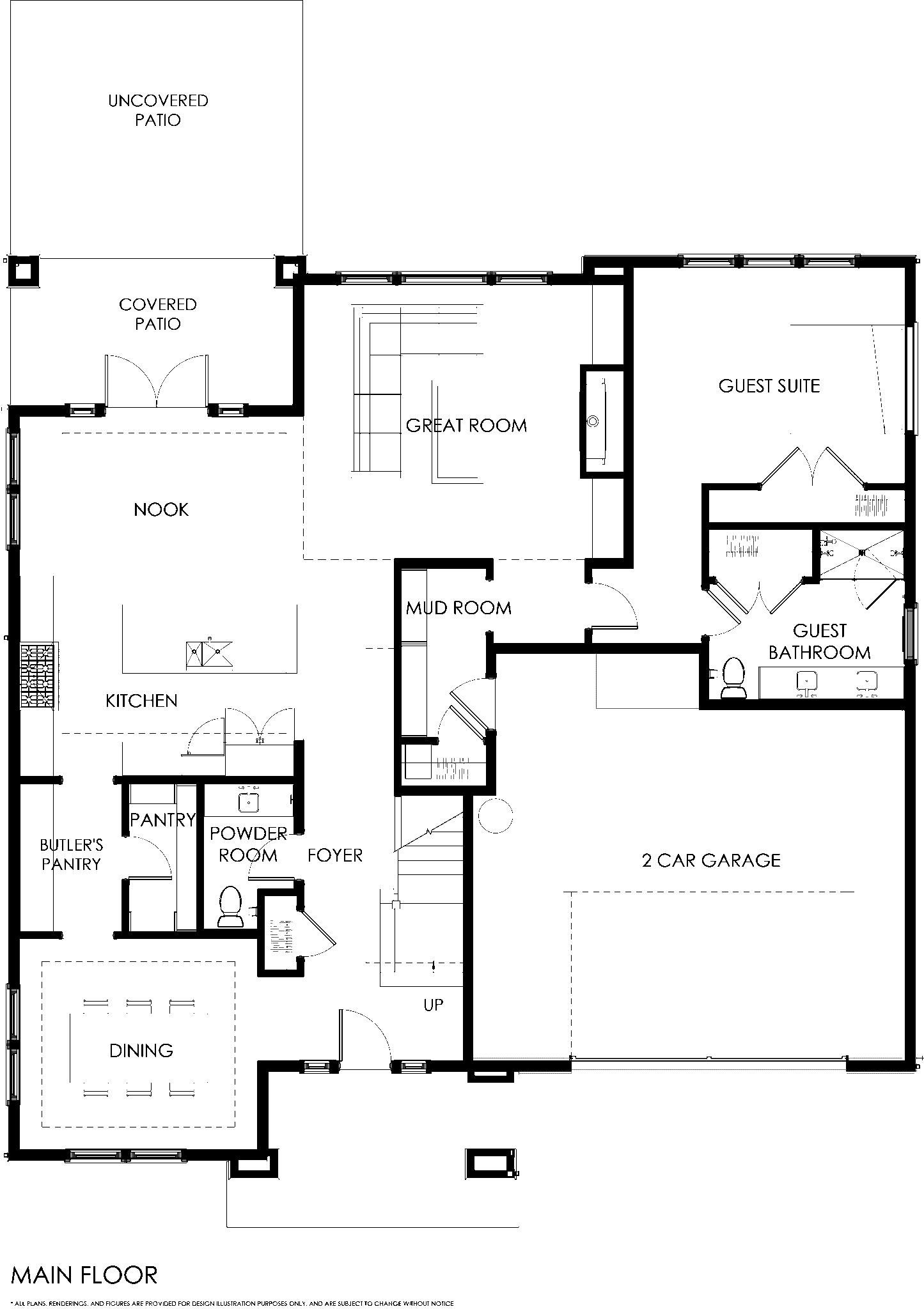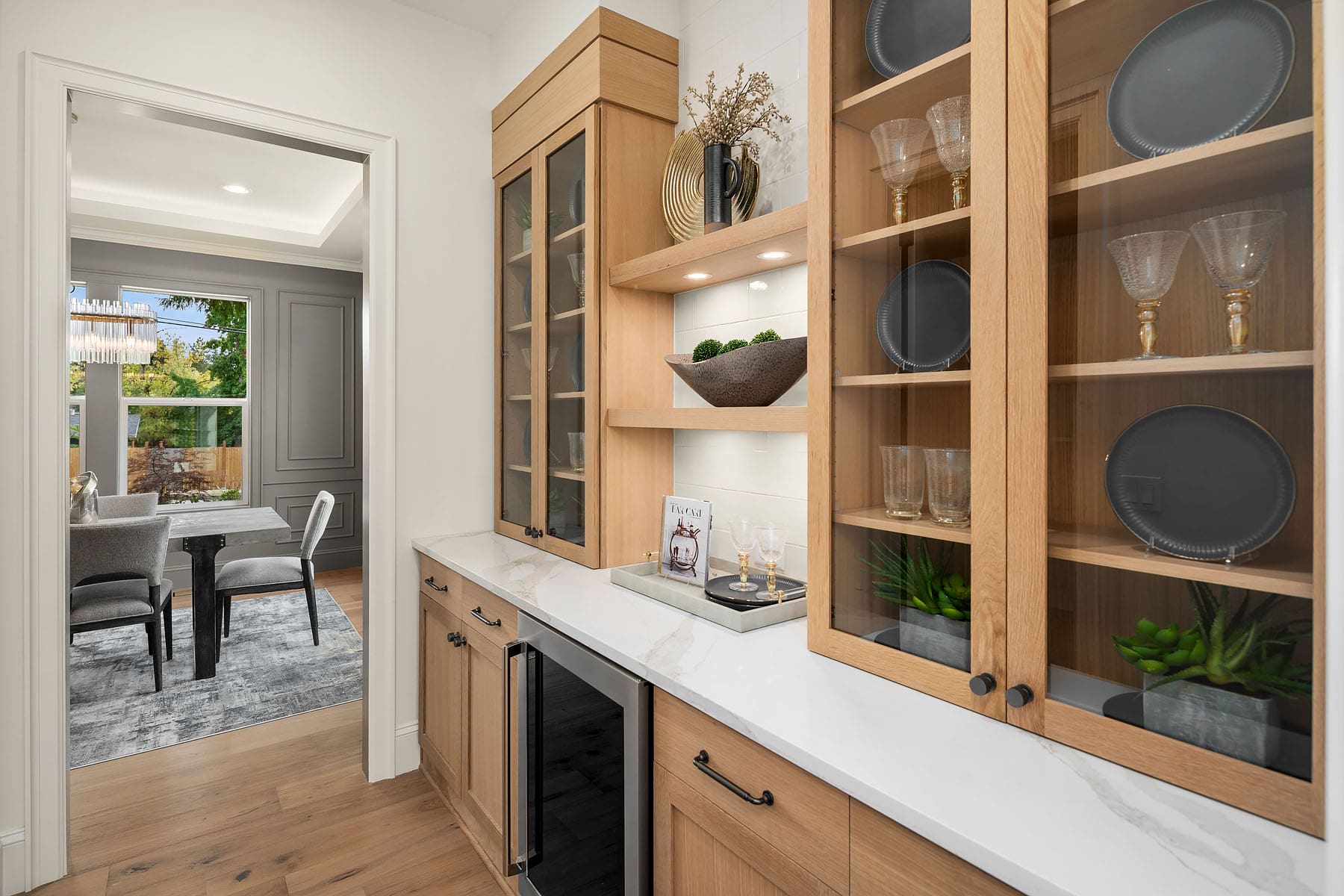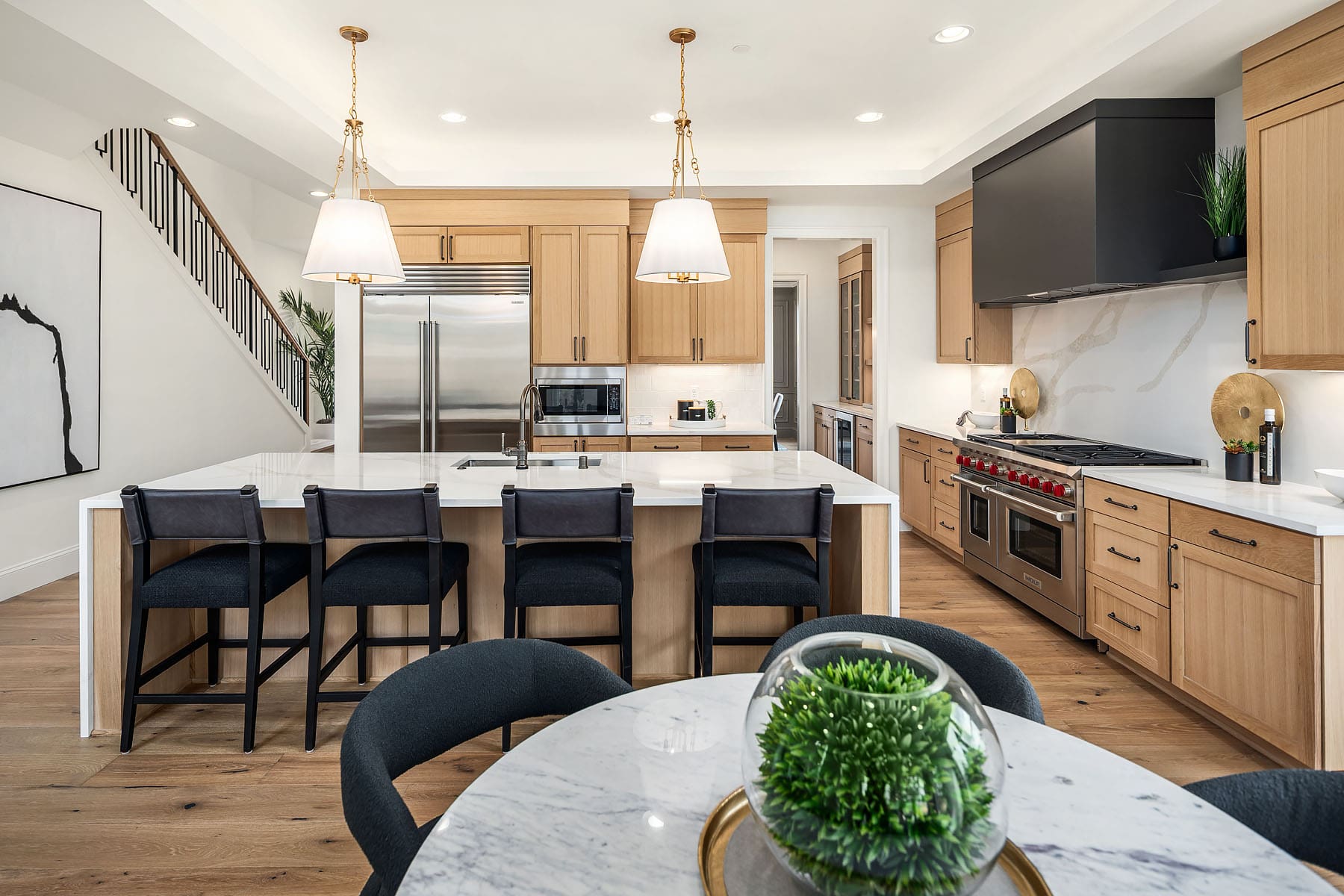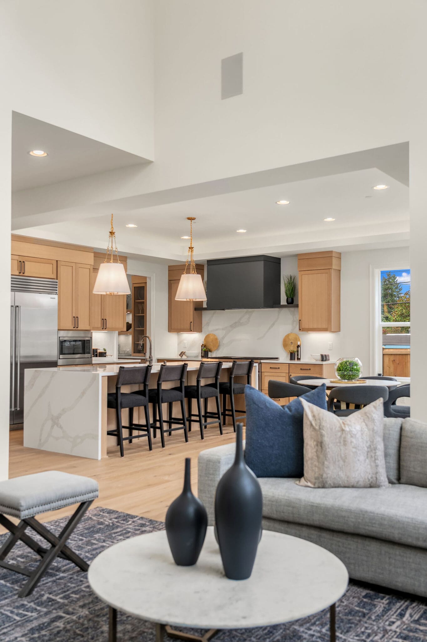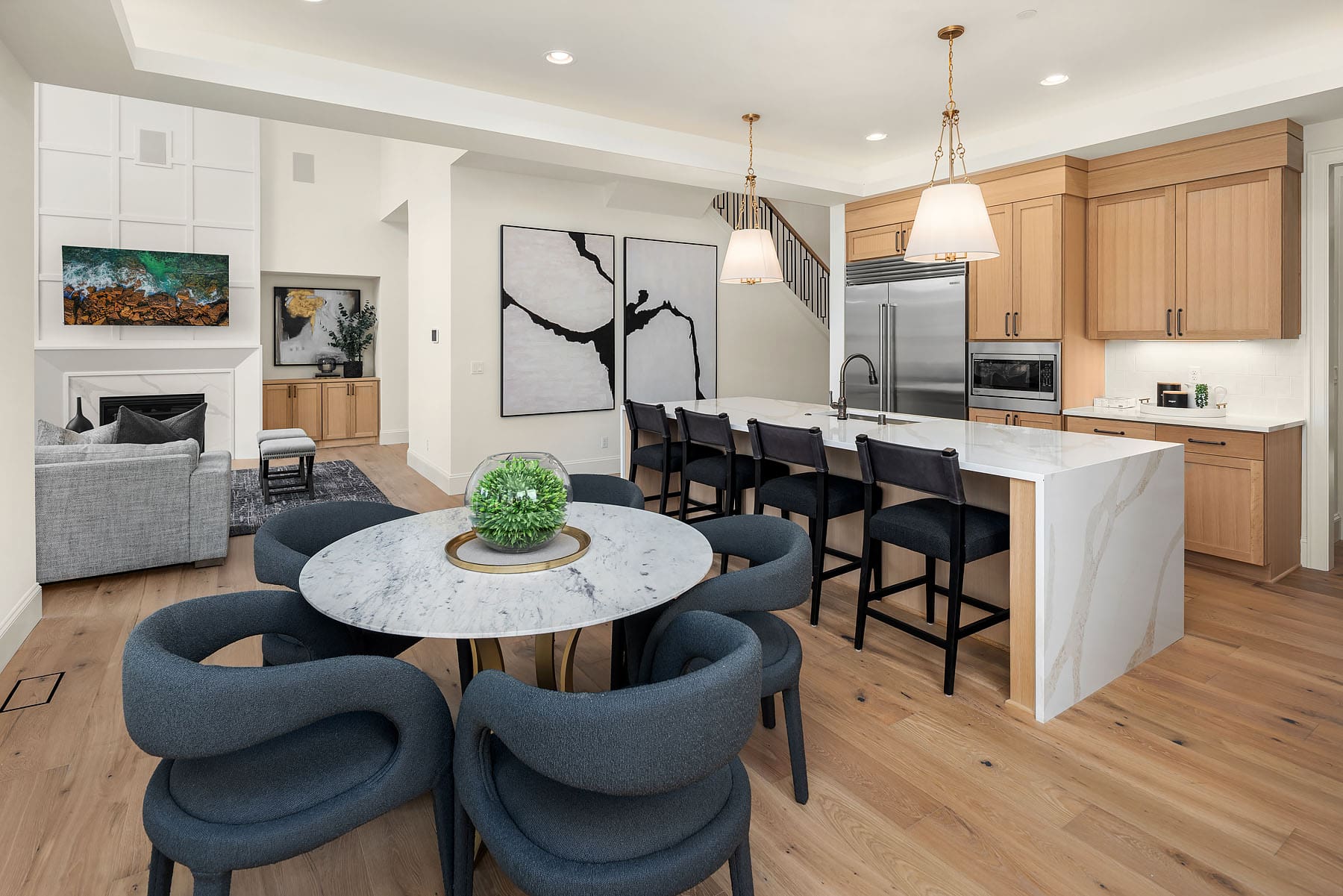 Thoughtfully designed for everyday living, this home features a spacious two-story great room that connects seamlessly to a designer chef’s kitchen with luxury appliances. A butler’s pantry connects the kitchen to the formal dining room, making hosting simple and convenient.  Enjoy year-round living on the private covered patio, looking over the private backyard. The main floor also includes a private guest suite with its own en suite bath and a two-car garage with an adjoining mudroom.