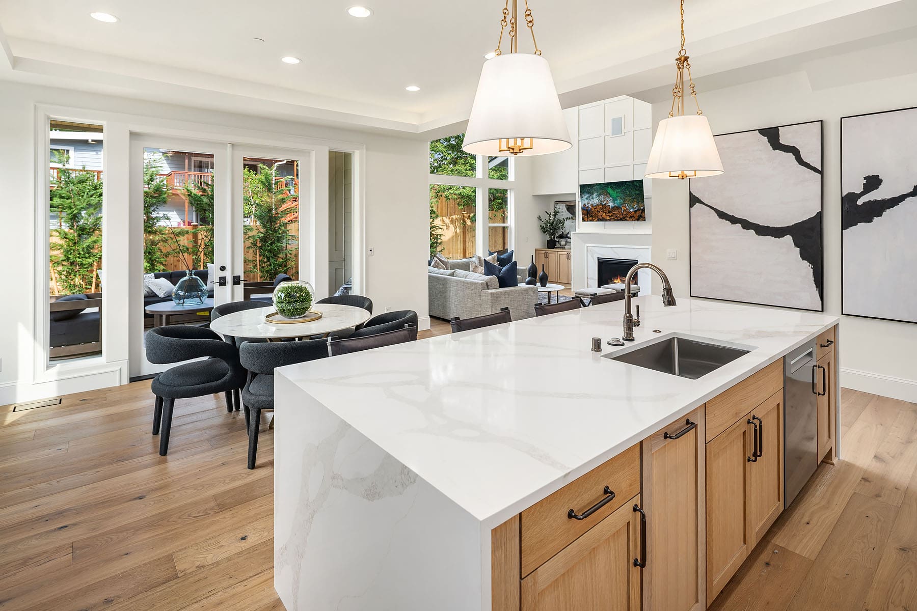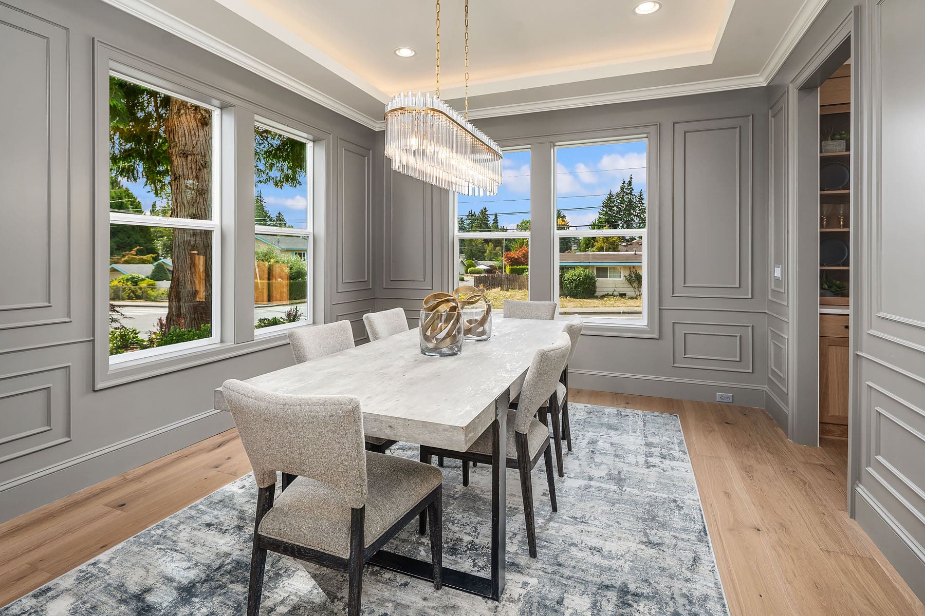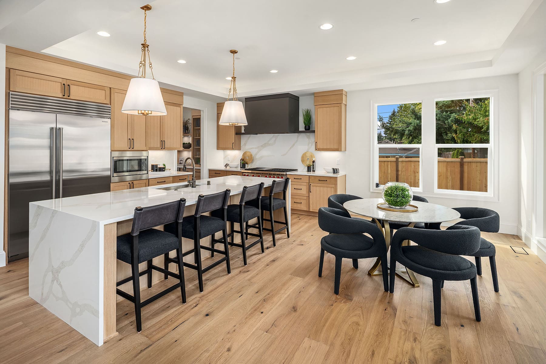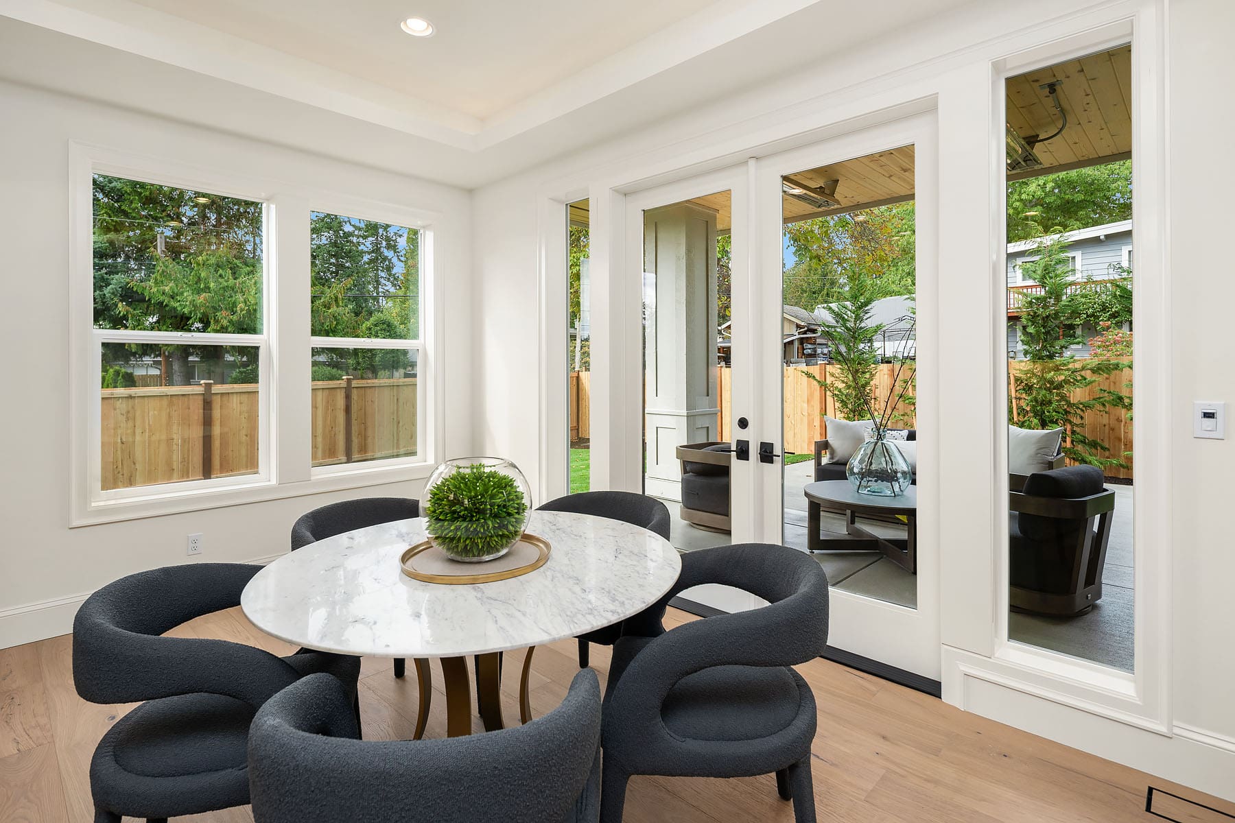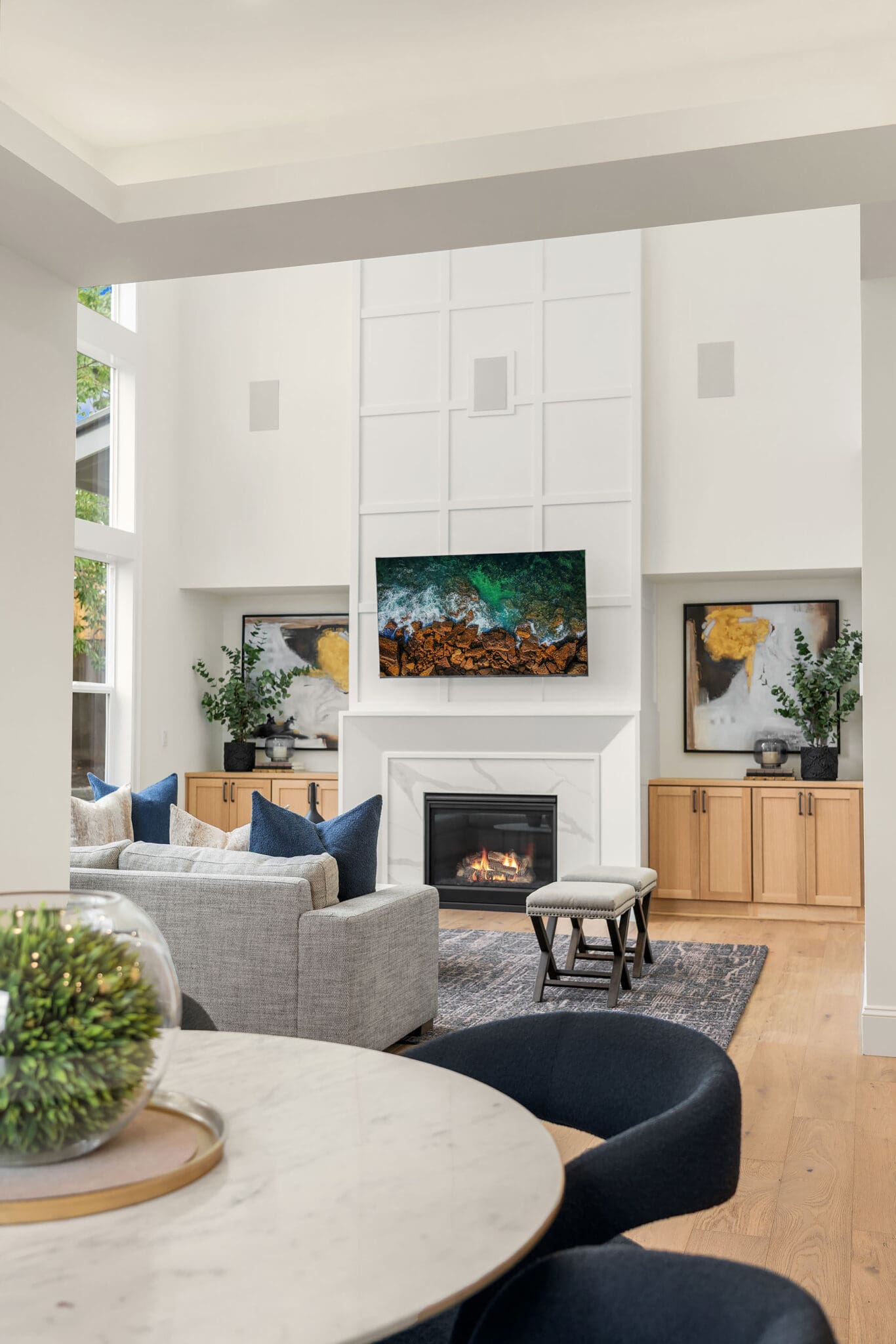 Thoughtfully designed for everyday living, this home features a spacious two-story great room that connects seamlessly to a designer chef’s kitchen with luxury appliances. A butler’s pantry connects the kitchen to the formal dining room, making hosting simple and convenient.  Enjoy year-round living on the private covered patio, looking over the private backyard. The main floor also includes a private guest suite with its own en suite bath and a two-car garage with an adjoining mudroom.