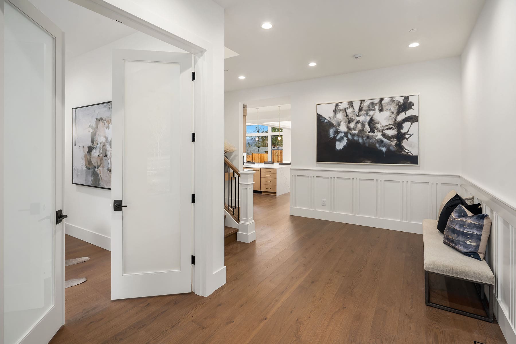 Thoughtfully designed for everyday living, this home features a spacious two-story great room that connects seamlessly to a designer chef’s kitchen with luxury appliances. Enjoy year-round living on the private outdoor living area with heaters, looking over the private backyard. The main floor also includes a private guest suite with its own en suite bath, dedicated den and a three-car garage with an adjoining mudroom.