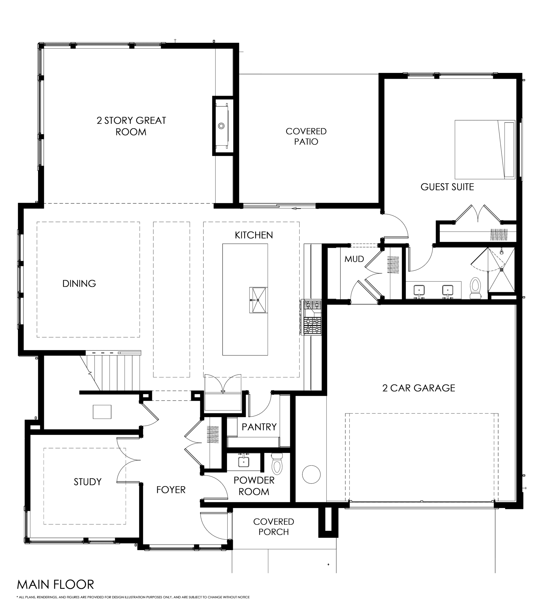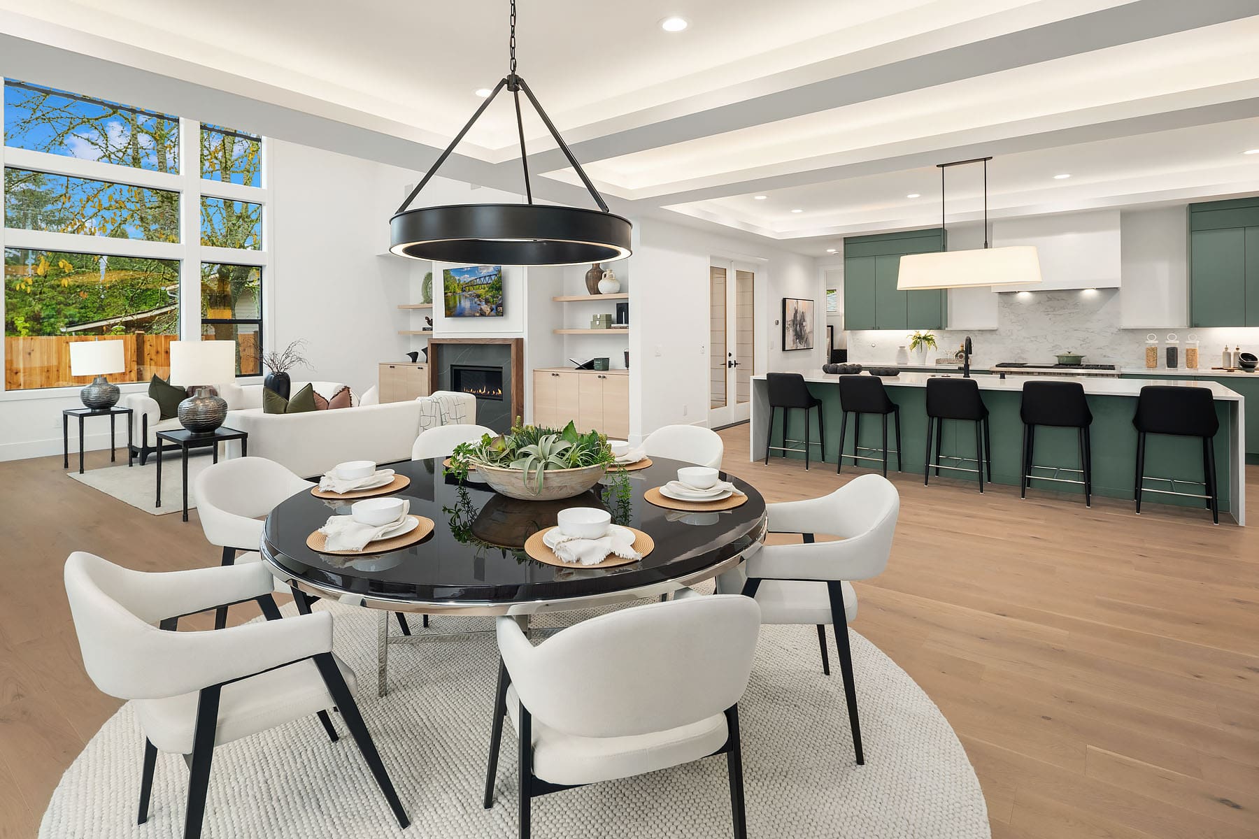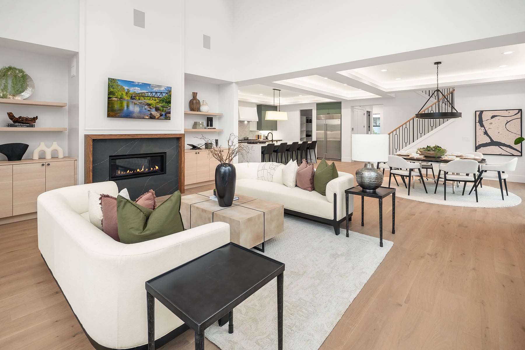 Thoughtfully designed for everyday living, this home features a spacious two-story great room that connects seamlessly to a designer chef’s kitchen with luxury appliances. Enjoy year-round living on the private outdoor living area, looking over the private backyard. The main floor also includes a private guest suite with its own en suite bath and a two-car garage with an adjoining mudroom.