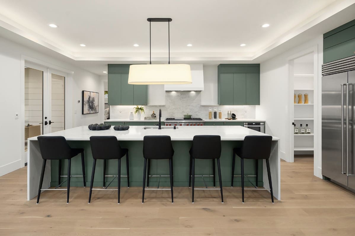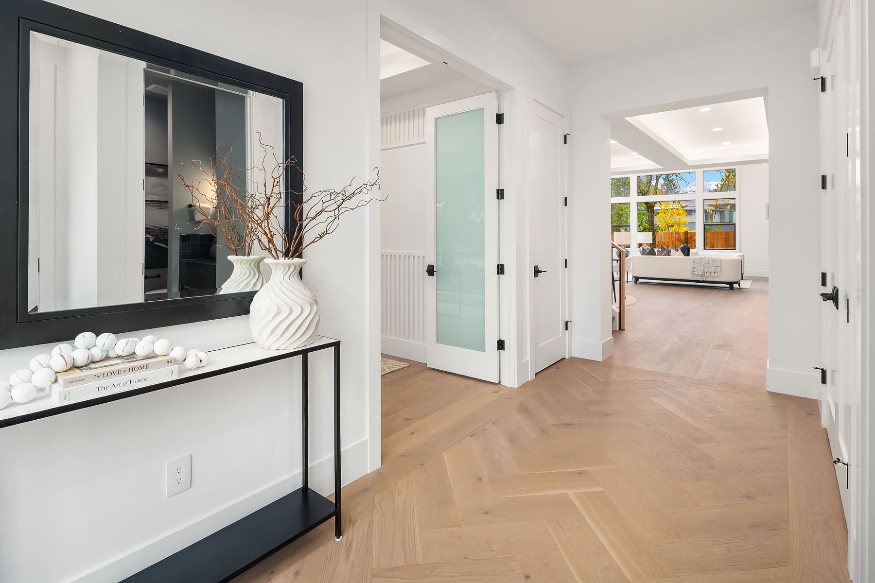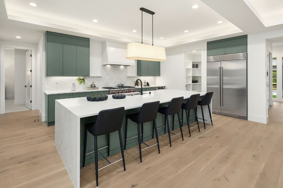 Thoughtfully designed for everyday living, this home features a spacious two-story great room that connects seamlessly to a designer chef’s kitchen with luxury appliances. Enjoy year-round living on the private outdoor living area, looking over the private backyard. The main floor also includes a private guest suite with its own en suite bath and a two-car garage with an adjoining mudroom.