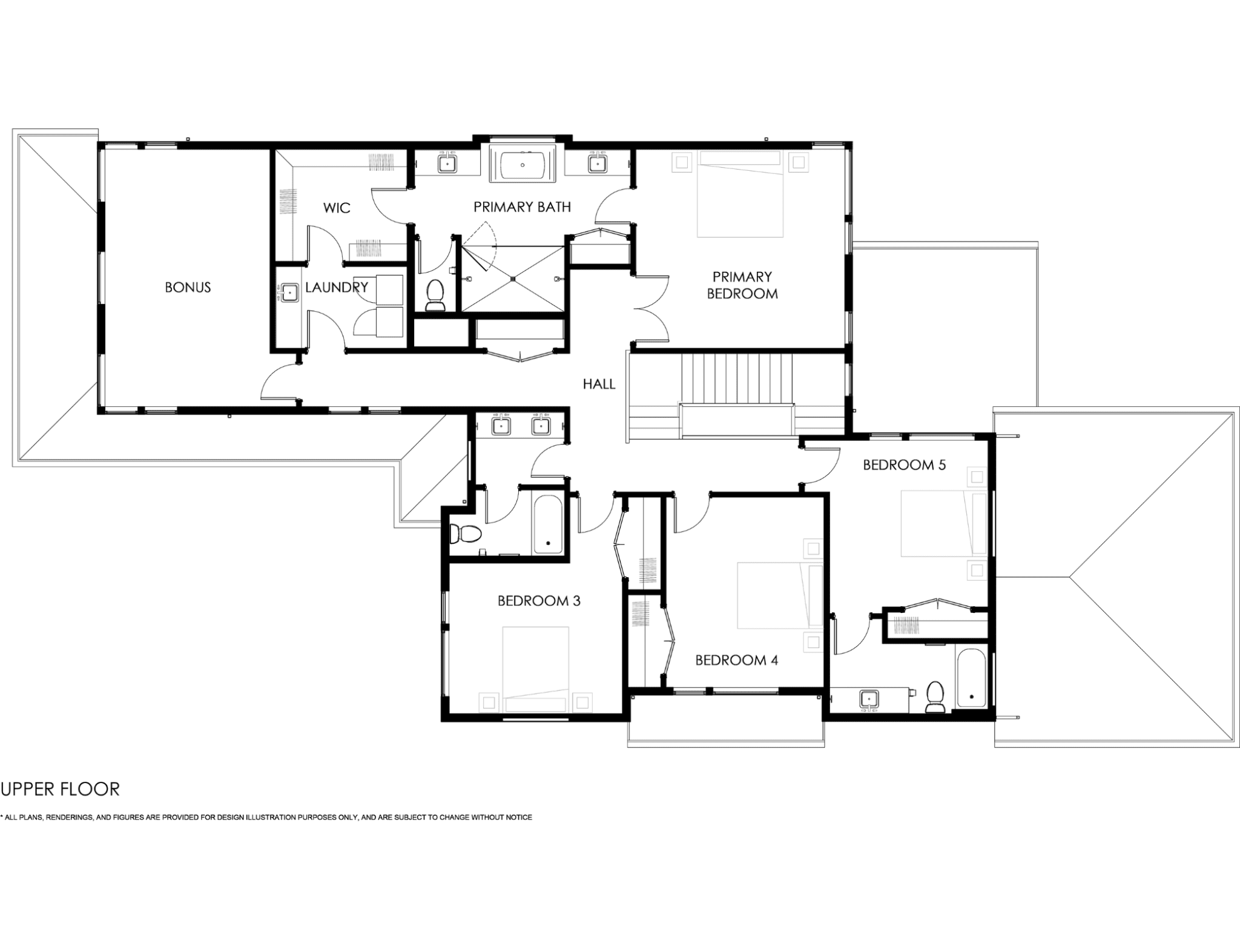 Upstairs, the primary suite offers a spa-like 5-piece bath with a spacious walk-in closet and connected laundry room. A flexible bonus room and three additional bedrooms, each with generous closet space provide plenty of flexibility for family and guests.